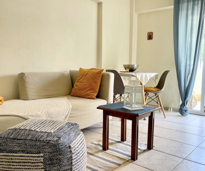 Das moderne im Erdgeschoss gelegene Ferienapartment PaSpiti mit ca. 40qm ist für 2 Personen (max. 3 Personen auf Anfrage) nutzbar und verfügt über 2 Zimmer mit Küchenzeile und Duschbad. Das Apartment hat einen eigenen sehr großen Süd-West Balkon und einen Innenhof der genutzt werden kann.